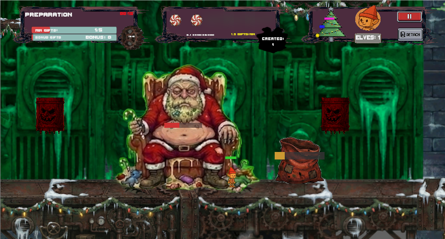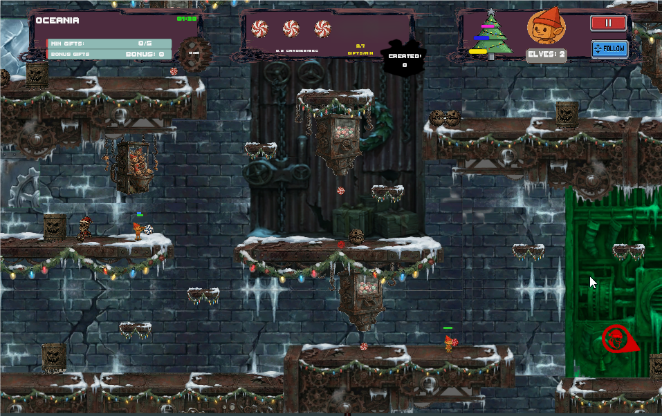 Christmas Candy Rush is a 2D platformer where you control Santa’s factory elves and keep the gift engine running—by feeding Santa tasty candies, one rhythmic loop at a time.